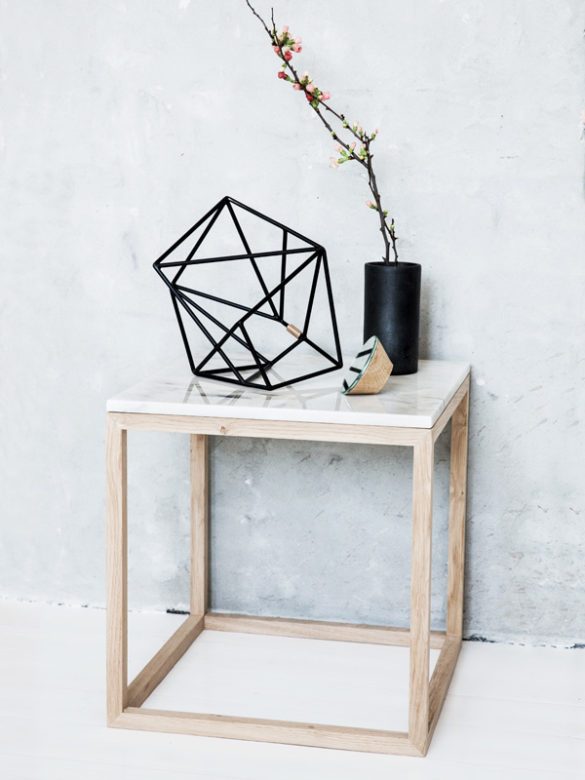 Auch der Beistelltisch THE CUBE TABLE zeichnet sich durch eine klare Formsprache aus und bringt mit Marmor und Holz natürliche, hochwertige Materialien zusammen. Zudem hat der der CUBE TABLE gleich mehrere Funktionen und kann zusätzlich als Nachttisch genutzt werden.