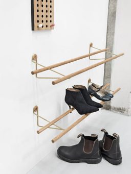 Eine angemessene Bühne für Sneaker, Stiefel und Stilettos hält das hängende Schuhregal SHOE RACK bereit. Gefertigt aus Bambusholz, hellem oder dunklen Eichenholz und mit einer filigranen Wandhalterung aus wahlweise goldenem Messing oder schwarzem Stahl werden eure Schuhe angemessen präsentiert. Ein Schuhregal, das genauso stylisch ist wie eure Schuhe und sich nach eurem Geschmack individuell zusammenstellen lässt. So habt ihr eure Lieblinge immer gern im Blick.