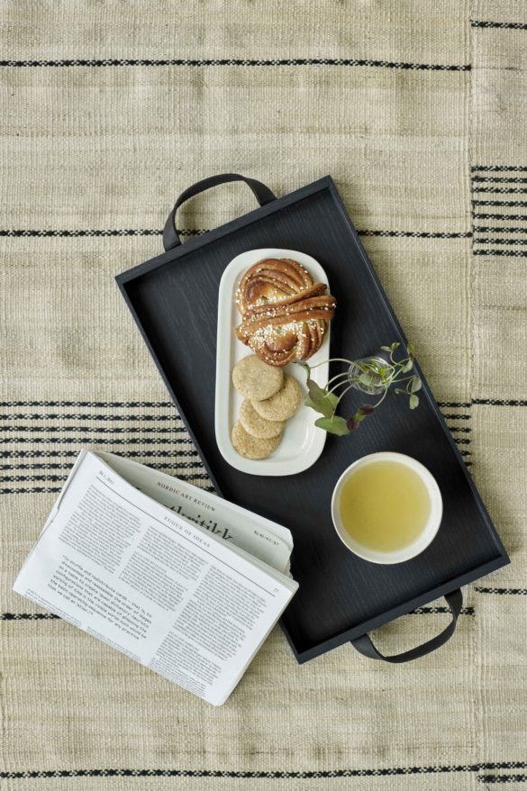 Das Grundrezept mit Gelinggarantie für Hygge: Kuscheliges Sofa, Kerzenschein, warmer Tee oder: Kakao med Flødeskum (Schlagsahne) und das ein oder andere Wienerbrød (süße Blätterteigteilchen mit viel Zimt und Vanillecreme). Elegant serviert auf einem Holztablett – dem NORDIC TRAY von Skagerak oder dem NORR TRAY aus gleichem Hause – erfreut es alle Sinne.