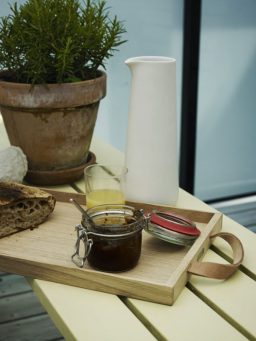 Die natürlichen Materialien Holz und Leder – mehr benötigt das moderne Tablett NORR TRAY von Skagerak nicht