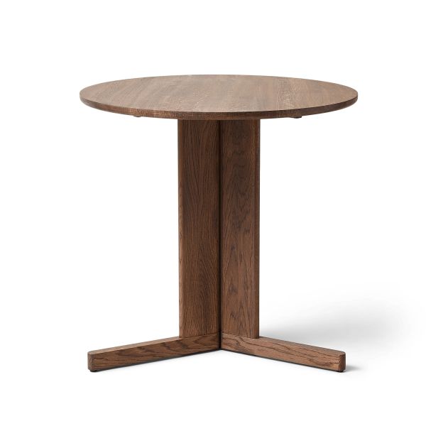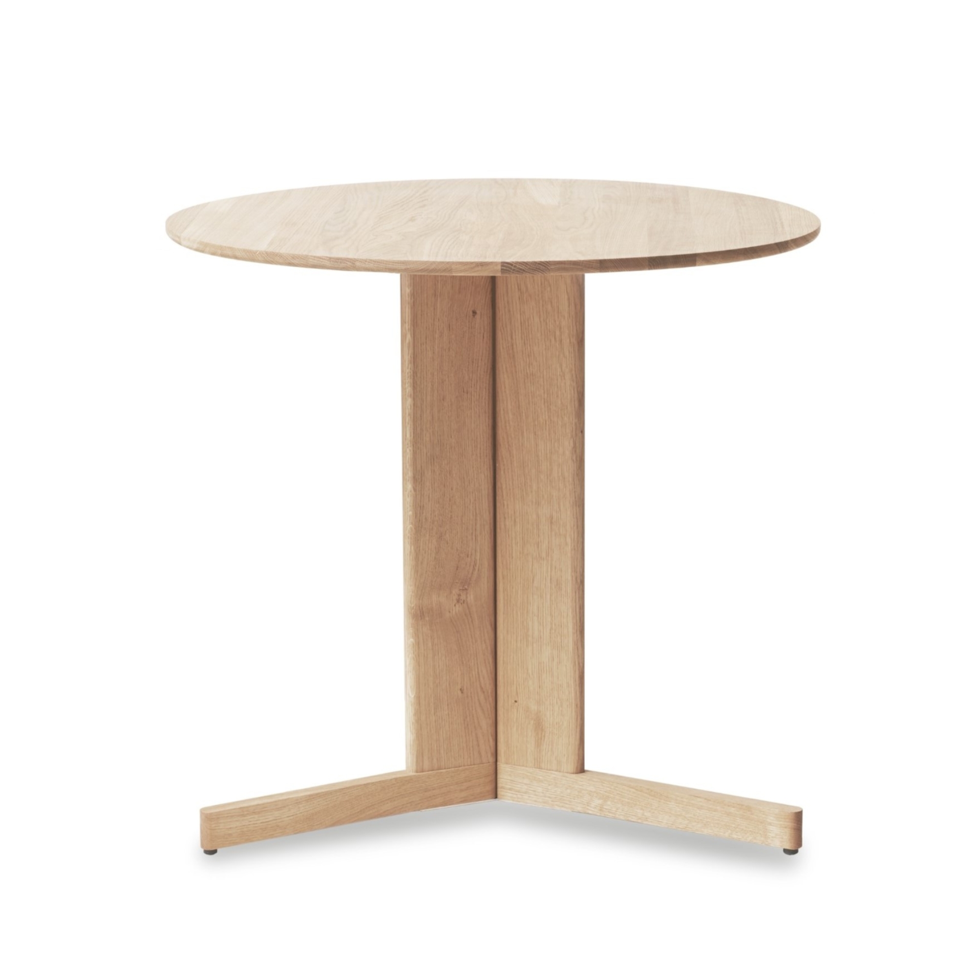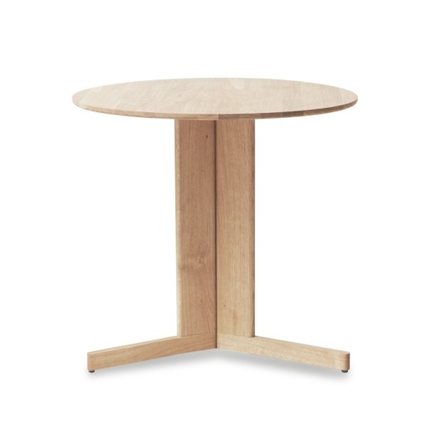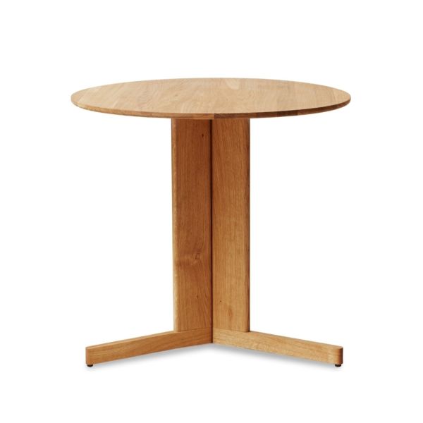 Der TREFOIL ROUND TABLE von FORM & REFINE ist ein kompakter, runder Küchentisch, der skandinavische Klarheit mit architektonischer Raffinesse verbindet. Mit seinem Durchmesser von 75 cm eignet er sich ideal für kleinere Küchen, Essbereiche oder Cafés. Die runde Tischplatte aus massiver Eiche ruht auf einer markanten Dreibein-Konstruktion, die dem Tisch trotz seines soliden Materials eine überraschende Leichtigkeit verleiht.