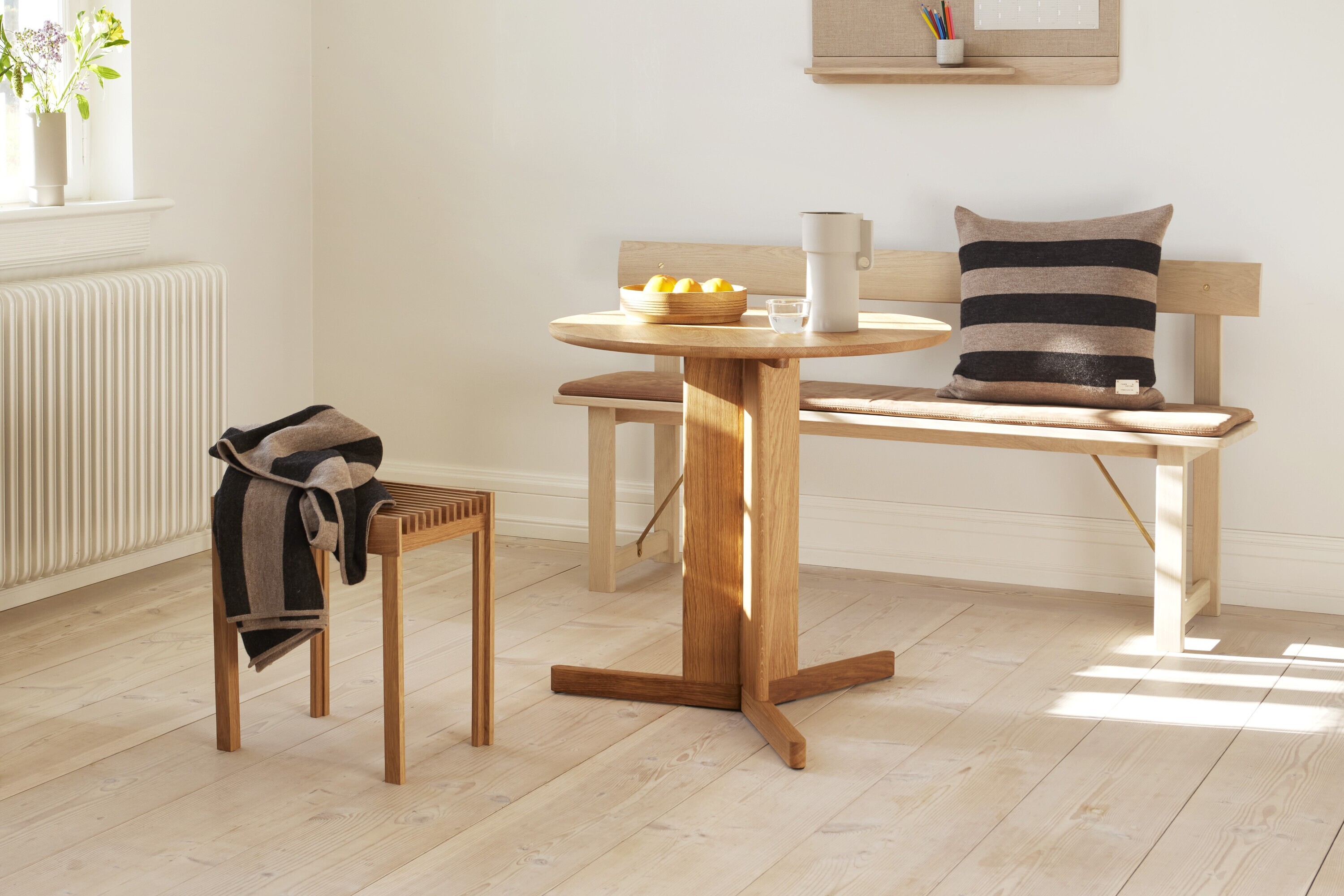 Gefertigt aus FSC-zertifizierter, massiver europäischer Eiche, steht der TREFOIL ROUND TABLE für verantwortungsvolle Materialwahl und langlebige Handwerksqualität. Entworfen wurde der runde Tisch von Herman Studio im Jahr 2020. Verschiedene Oberflächen – naturgeölt, weiß geölt oder geräuchert – unterstreichen die natürliche Maserung des Holzes und erlauben eine individuelle Anpassung. So fügt sich der runde Küchentisch harmonisch in unterschiedliche Raumkonzepte ein und lässt sich problemlos mit anderen Möbeln kombinieren.