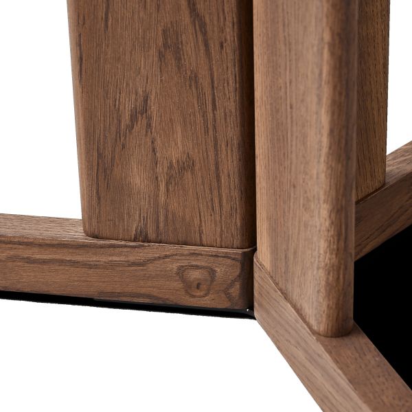 Detailaufnahme des runden Küchentisches TREFOIL ROUND TABLE von FORM & REFINE in Eiche geräuchert, matt lackiert ABMESSUNGEN