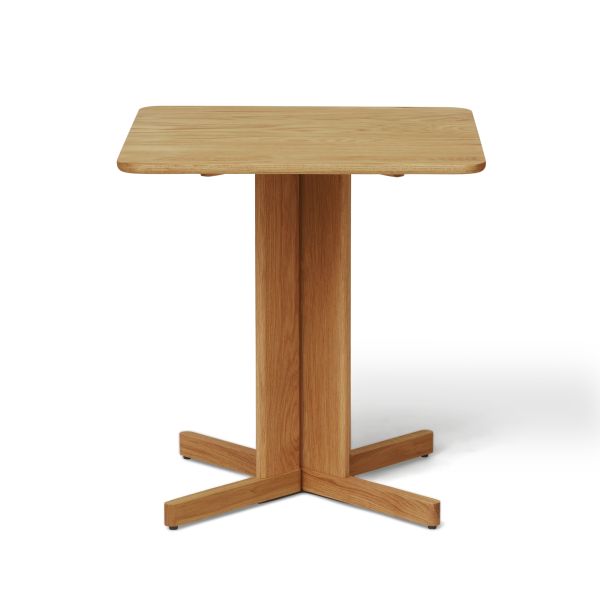 Der TREFOIL SQUARE TABLE von FORM & REFINE ist ein kompakter, quadratischer Küchentisch, der skandinavische Klarheit mit architektonischer Präzision verbindet. Mit seinem Maß von 68 × 68 cm eignet er sich ideal für kleinere Küchen, Essbereiche oder Cafés. Die quadratische Tischplatte aus massiver, FSC-zertifizierter Eiche ruht auf einer zentralen Vierbein-Konstruktion, die dem Tisch trotz seiner soliden Materialität eine ruhige, ausgewogene Anmutung verleiht.