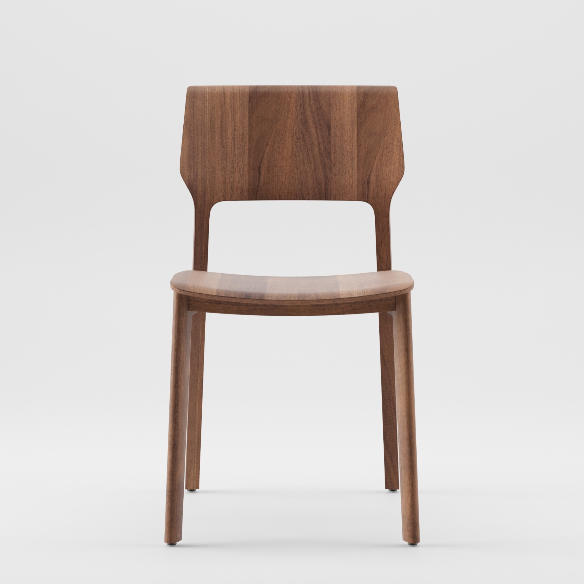Moderner Stuhl aus Massivholz mit klaren Linien und weichen Kanten als stilvolle Ergänzung einladender Esszimmer