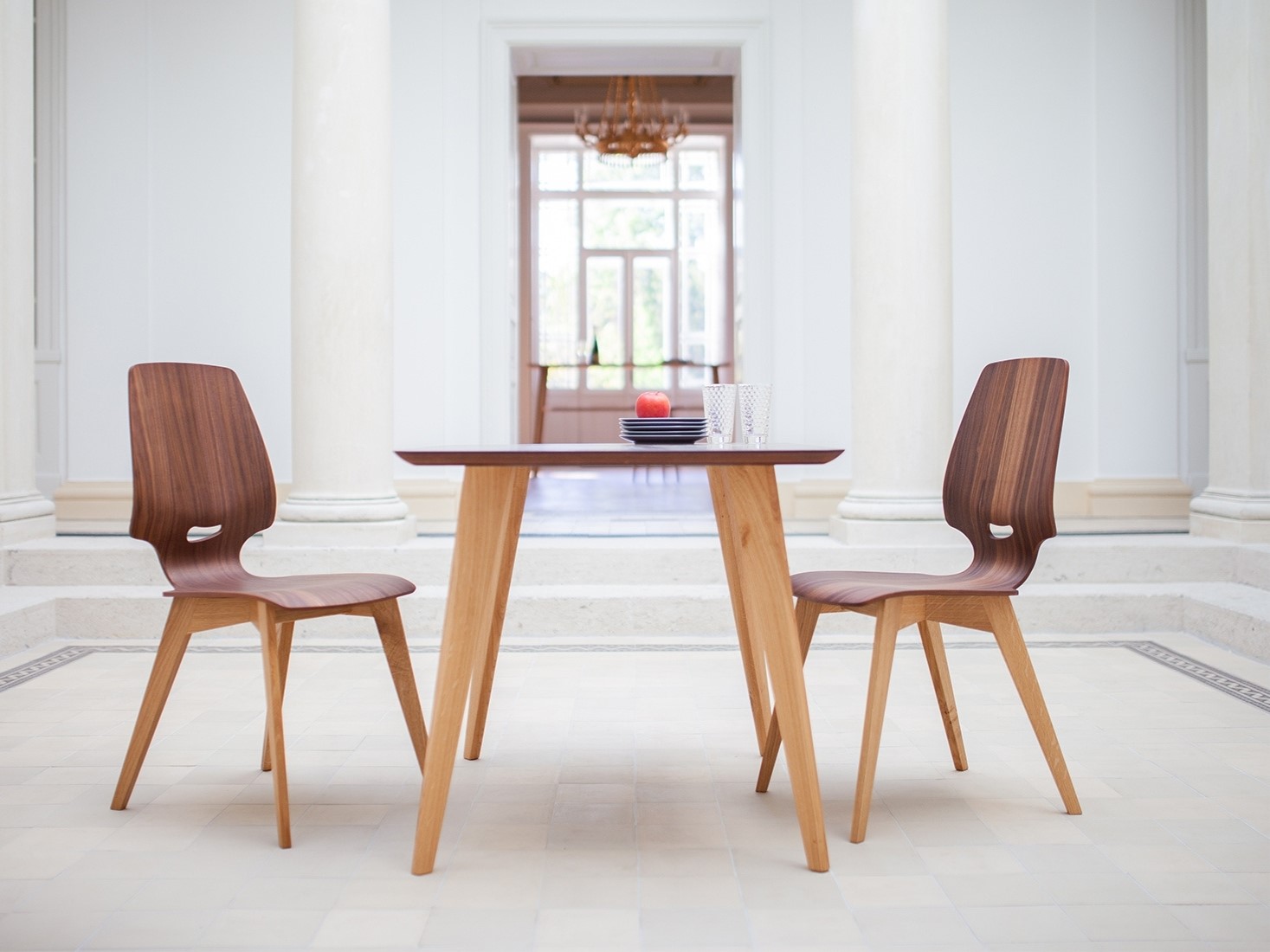 Moderne Esstischgruppe mit den bequemen Holzstühlen FINN und dem gleichnamigen Tisch von sixay