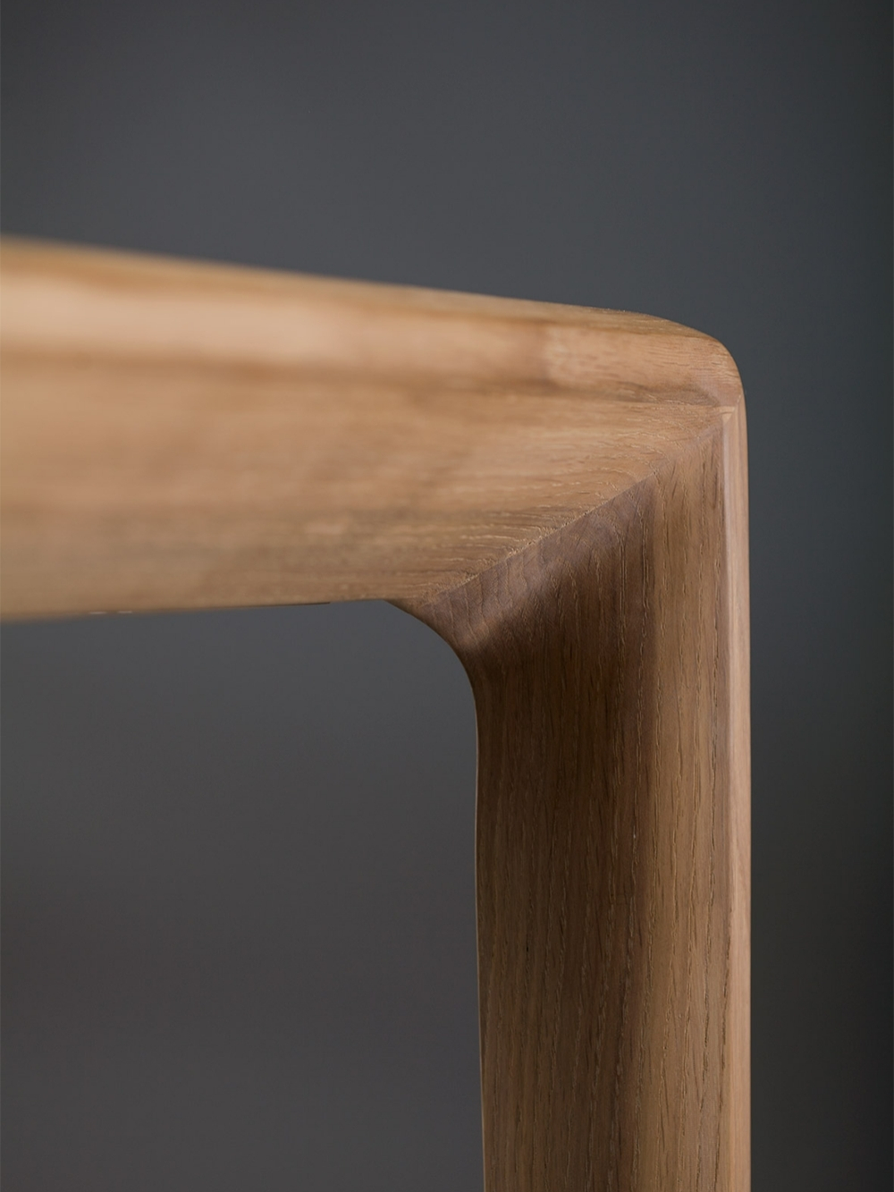 Detailansicht der weich abgerundeten Tischkanten des MAssivholz Ausziehtisches INVITO EXTENSION TABLE von Artisan in Eiche