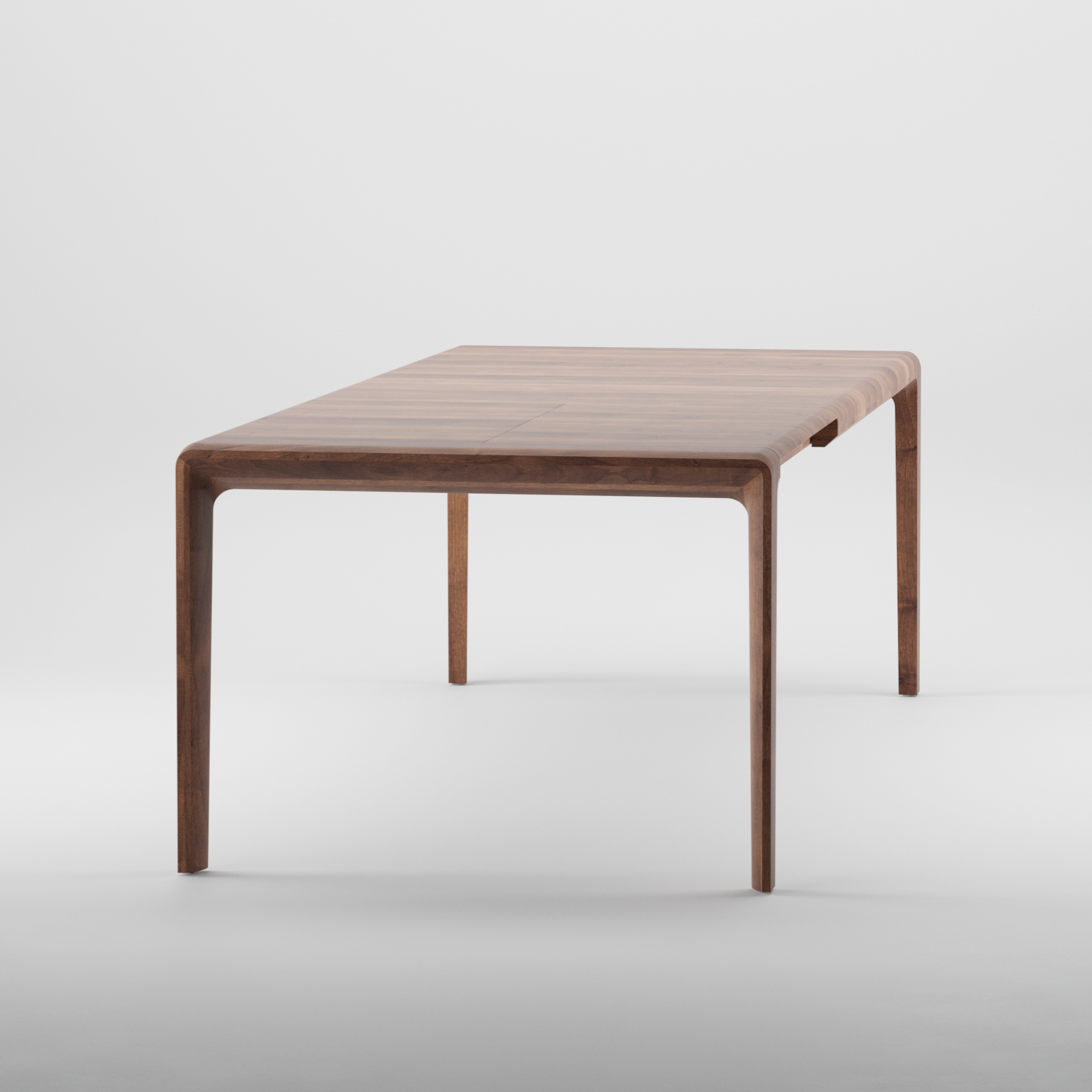 Seitenansicht des modernen Massivholz Ausziehtisches INVITO EXTENSION TABLE von Artisan in Nussbaum
