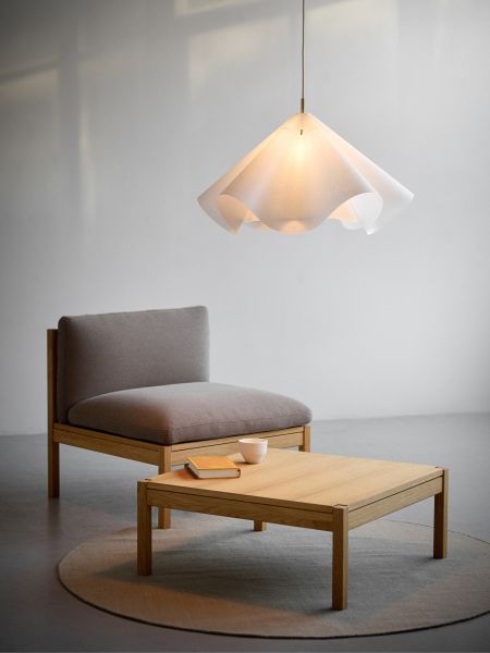 Erhältlich in zwei Größen, lässt sich die Hängeleuchte SINUATE PENDANT aus Papier flexibel in unterschiedliche Wohnbereiche integrieren – vom zentralen Blickfang über dem Esstisch bis hin zur stimmungsvollen Beleuchtung im Wohnzimmer.