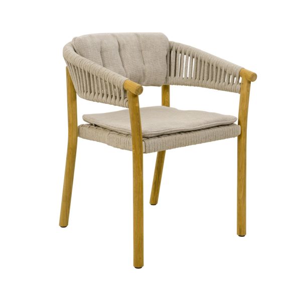 Eleganter Gartenstuhl MARCELLA DINING CHAIR von Traditional Teak in der Ausführung Round Rope Linen