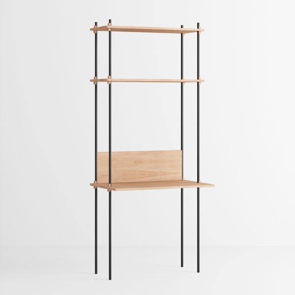 Regal mit Schreibtisch SHELVING SYSTEM WORKSPACE SINGLE von MOEBE in Eiche geölt mit schwarzem Gestell