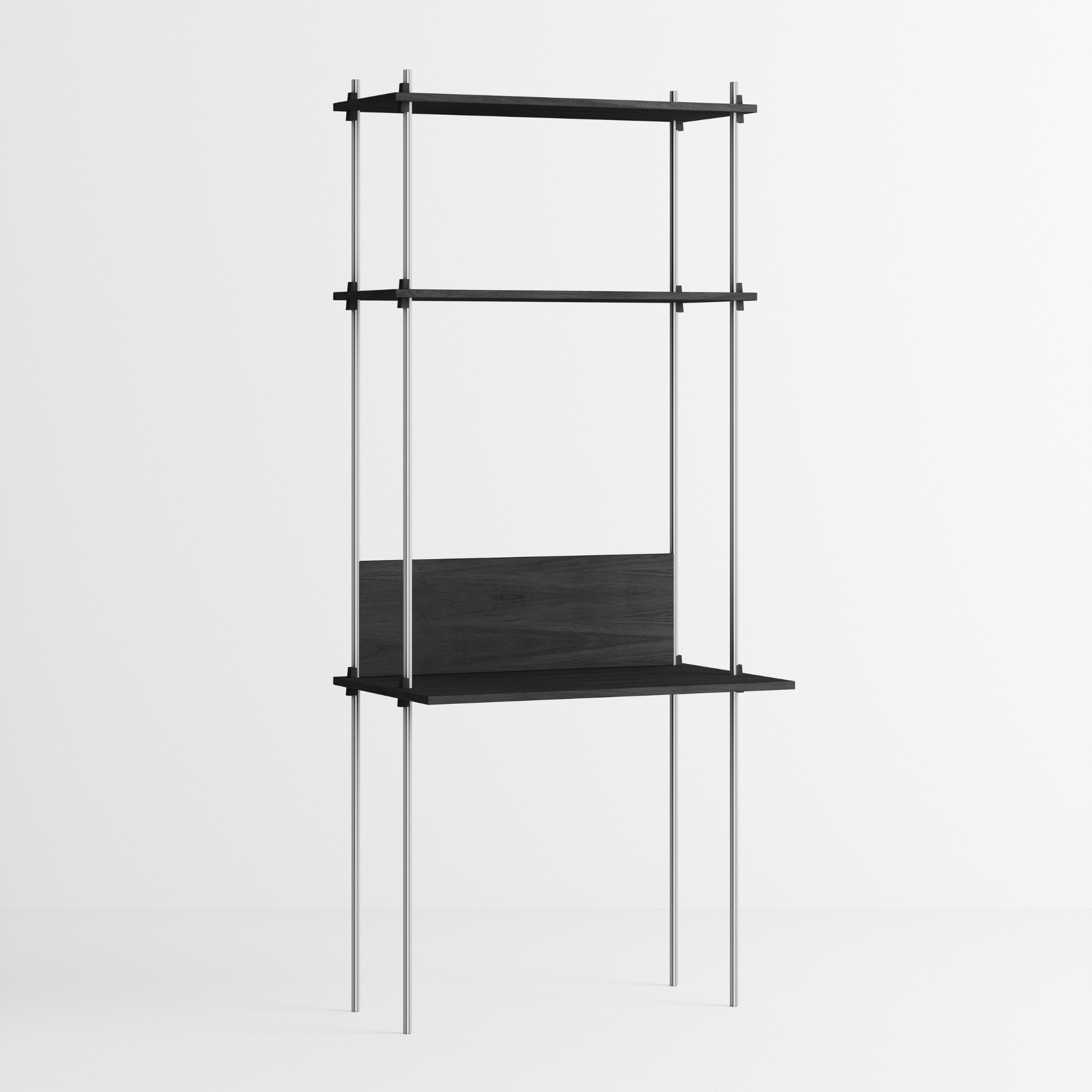 Regal mit Schreibtisch SHELVING SYSTEM WORKSPACE SINGLE von MOEBE in Eiche, schwarz gebeizt mit Gestell aus Edelstahl