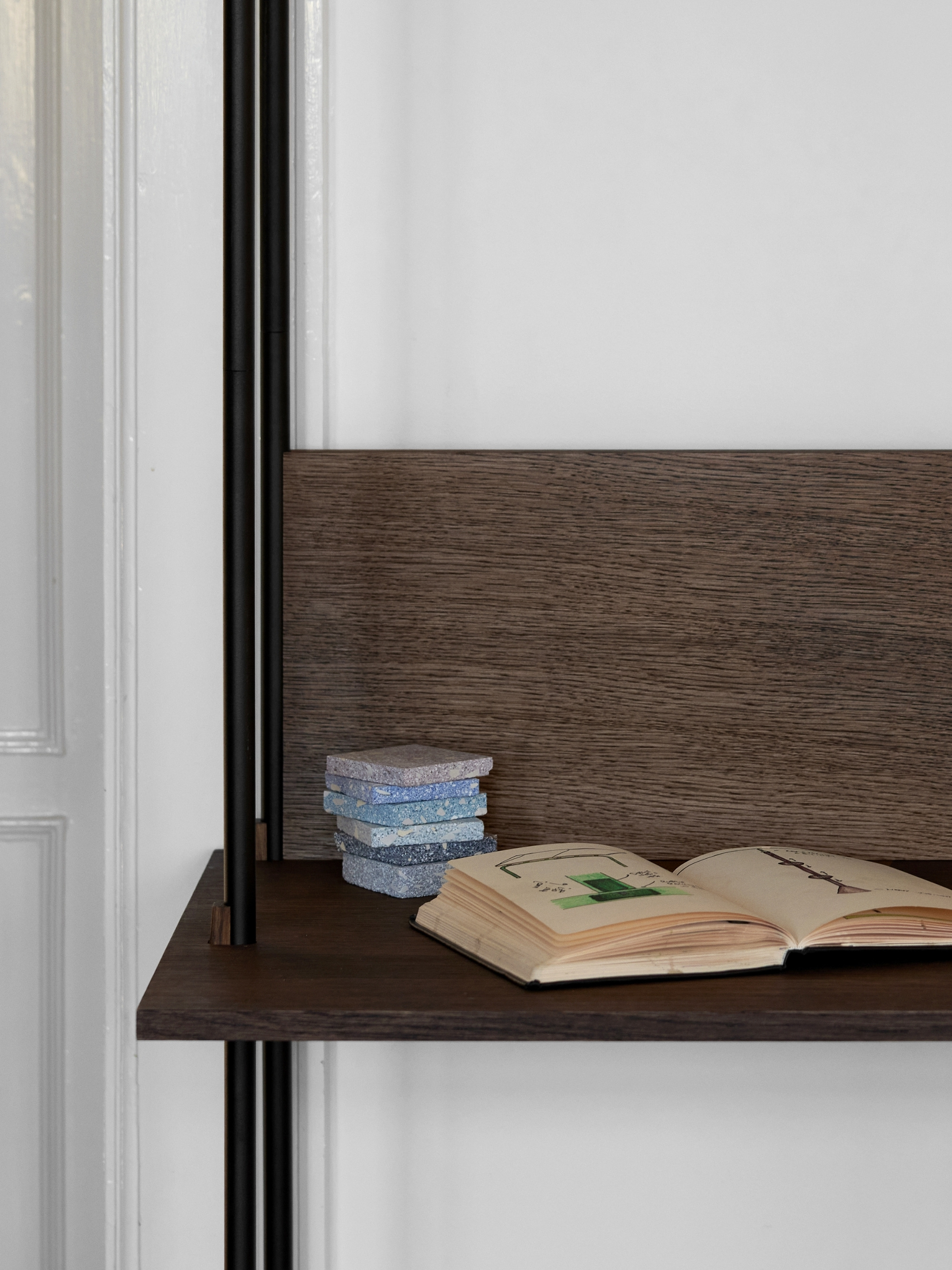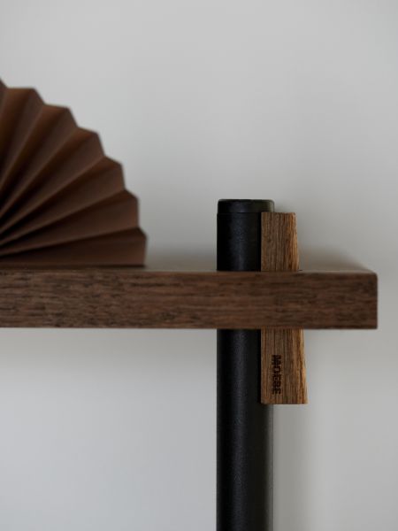 Die gut durchdachte Keilverbindung des SHELVING SYSTEM von MOEBE erleichtert nicht nur den Aufbau des Regalsystems, sondern ermöglicht auch eine individuelle Anpassung der einzelnen Elemente