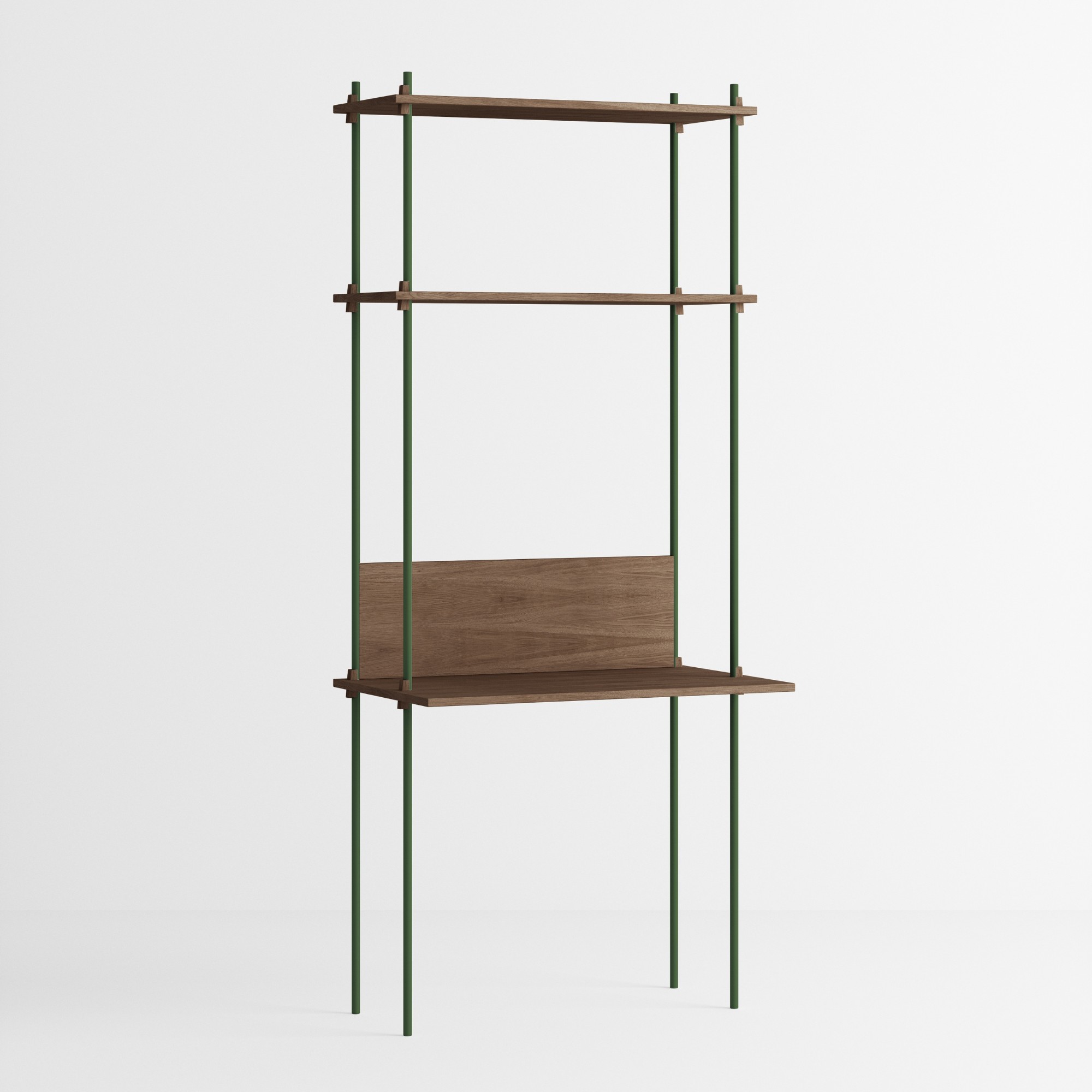 Regal mit Schreibtisch SHELVING SYSTEM WORKSPACE SINGLE von MOEBE in Eiche geräuchert mit grünem Gestell