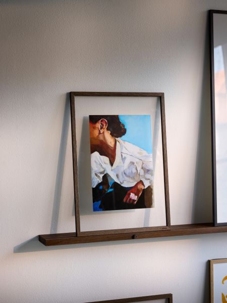 Ton in Ton wirken die Bilderleiste GALLERY SHELF und der Bilderrahmen FRAME in Eiche geräuchert von MOEBE besonders haronisch