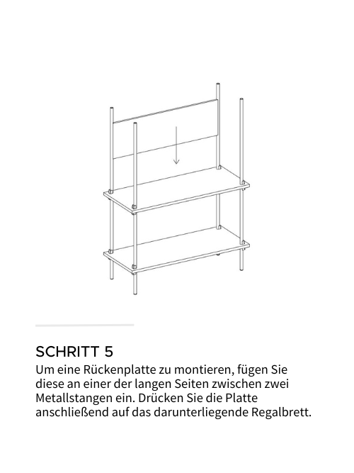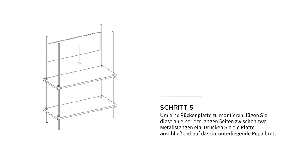 Unser Tipp: Um Verformungen zu vermeiden, empfehlen wir unter einzelnen Regalböden, die schwere Gegenstände tragen, eine zusätzliche Rückenplatte BACK PLATE anzubringen, um die Stabilität zu erhöhen.
